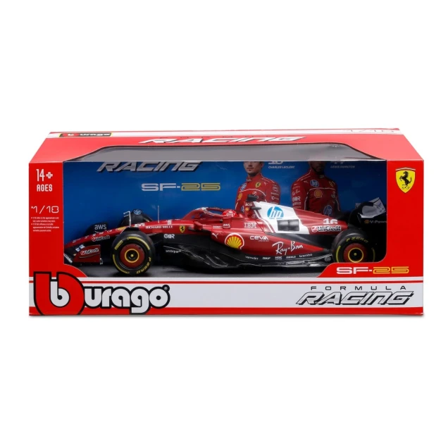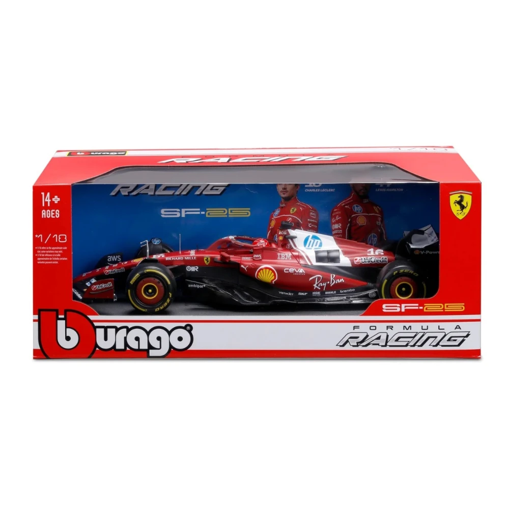 A paixão pela Ferrari em uma réplica detalhada do SF - 25 # 16 Charles Leclerc, escala 1:18, pintura oficial de 2025. Uma peça indispensável para colecionadores.